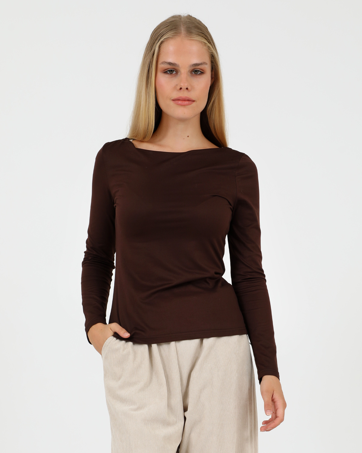 Μπλούζα καφέ DOCA 41219,κατασκευασμένη από 95% πολυεστέρα-5% spandex.