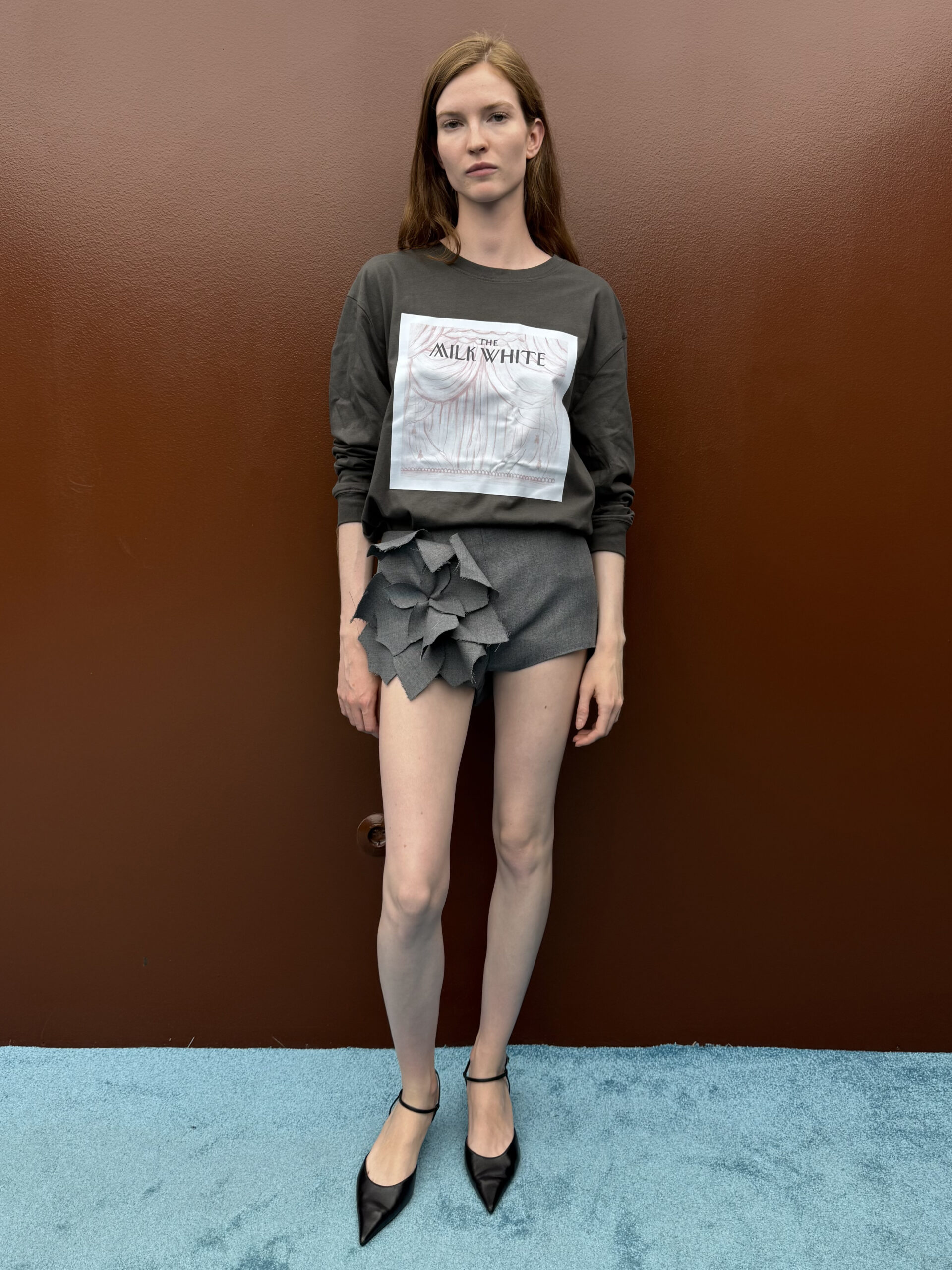 Longsleeve t-shirt faded black TF25-626 MILKWHITE: T-shirt μακρυμάνικο με στάμπα μπροστά σε μαύρο χρώμα από την MILKWHITE.