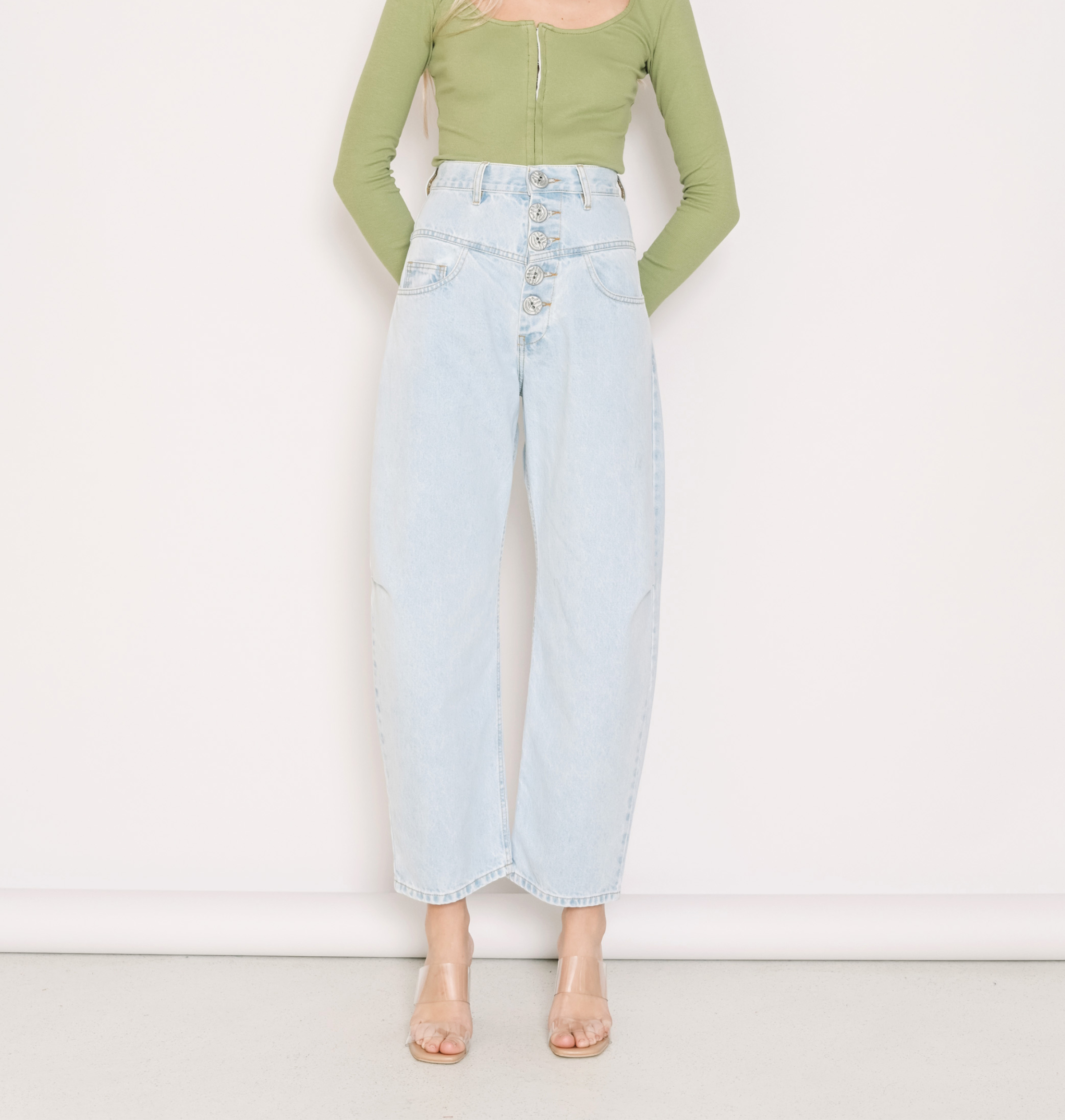 Mary Bleached SALT & PEPPER: Το Mary επαναφέρει το κλασικό ψηλόμεσο τζιν μέσα από μια balloon γραμμή με σύγχρονη, statement διάθεση. Το σταθερό, μαλακό denim αγκαλιάζει τη μέση και διαμορφώνει μια κομψή σιλουέτα, ενώ τα χρυσά κουμπιά προσθέτουν μια vintage, refined αισθητική.