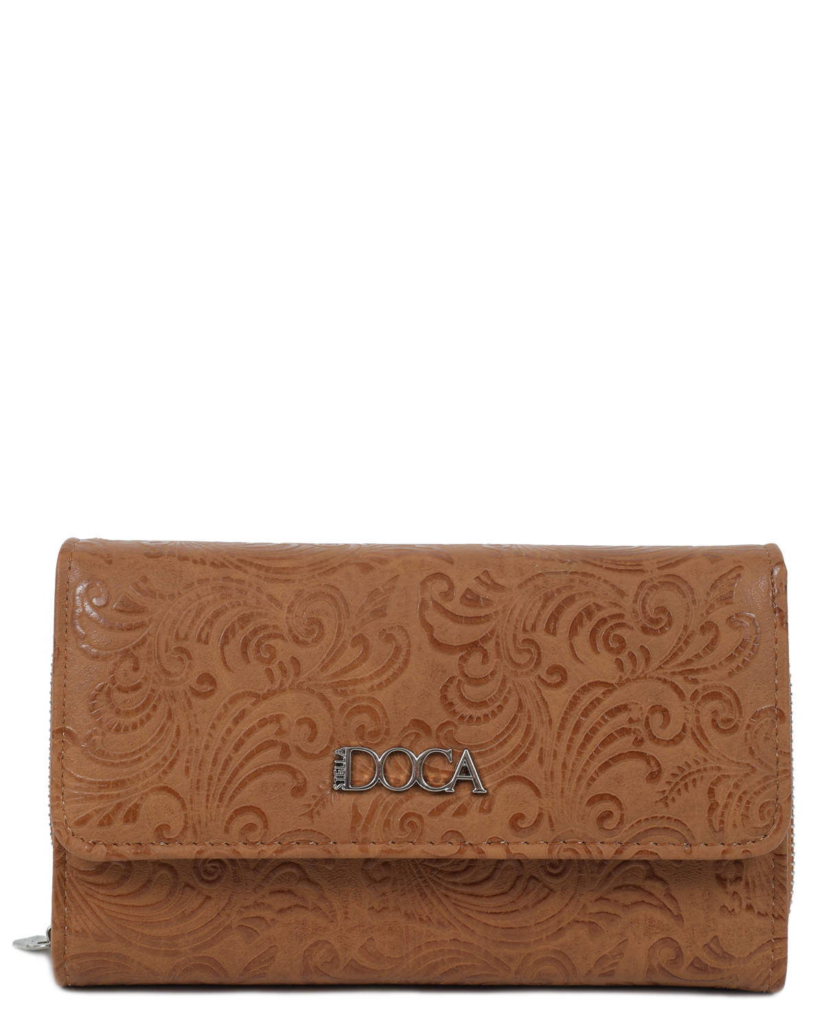 Πορτοφόλι καφέ DOCA 67660, κατασκευασμένο από 100% PU με διακοσμητικές λεπτομέρειες.