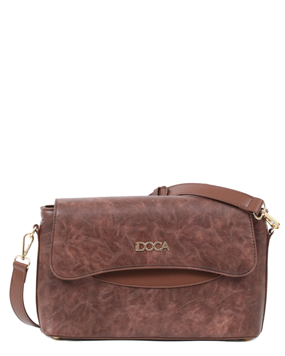 Τσάντα χιαστί καφέ DOCA 22713, κατασκευασμένη από 100% PU με διακοσμητικές λεπτομέρειες.