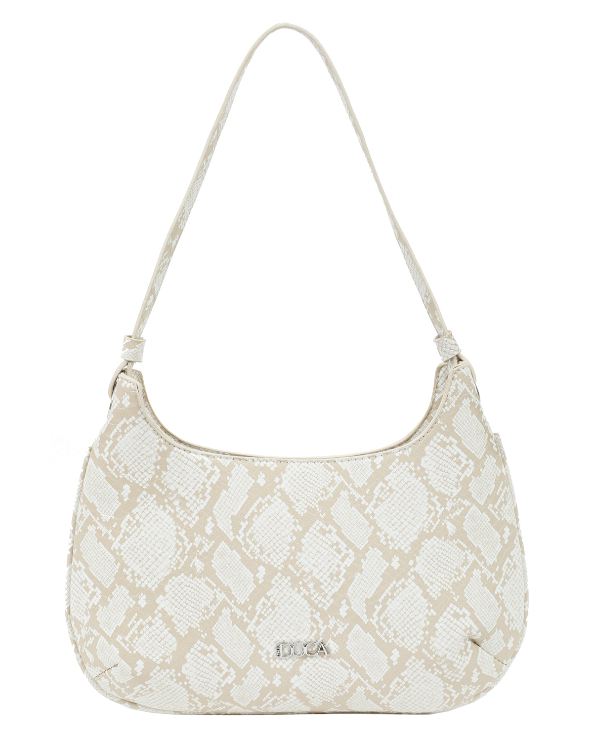 Τσάντα ώμου μπεζ DOCA 23132, κατασκευασμένη από 100% PU με διακοσμητικές λεπτομέρειες.