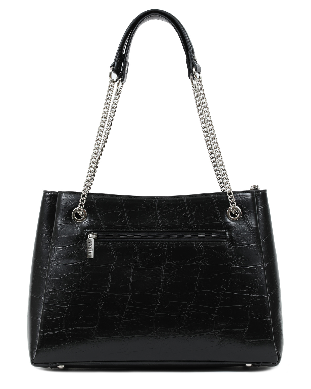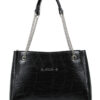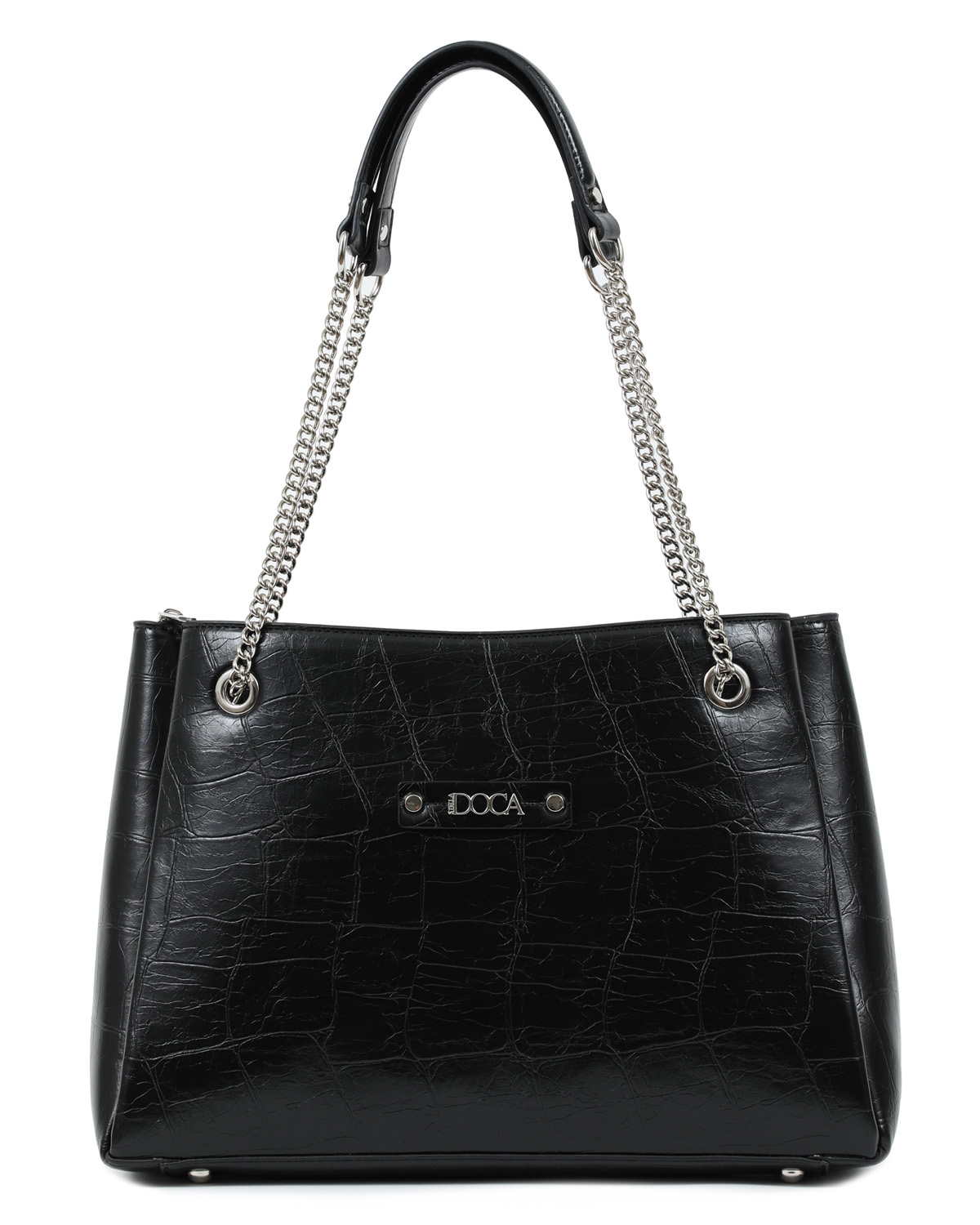 Τσάντα ώμου μαύρη DOCA 23261, κατασκευασμένη από 100% PU με διακοσμητικές λεπτομέρειες.