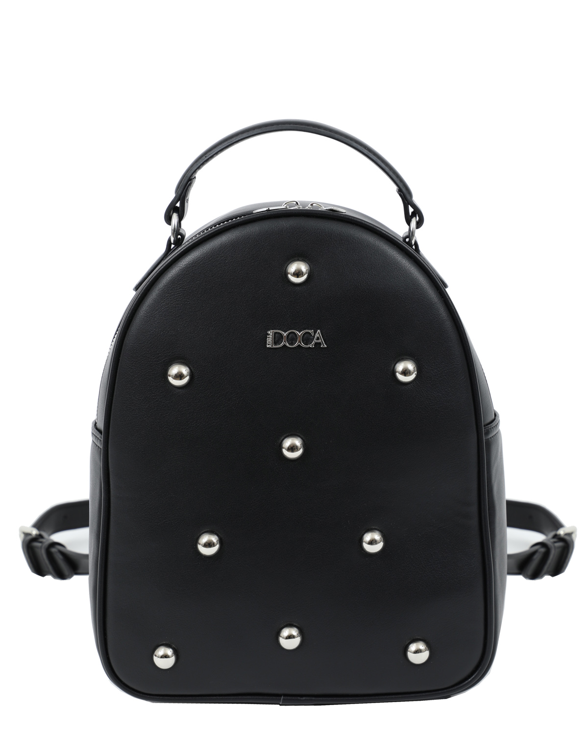 Τσάντα πλάτης μαύρη DOCA 23613, κατασκευασμένη από 100% PU με διακοσμητικές λεπτομέρειες.